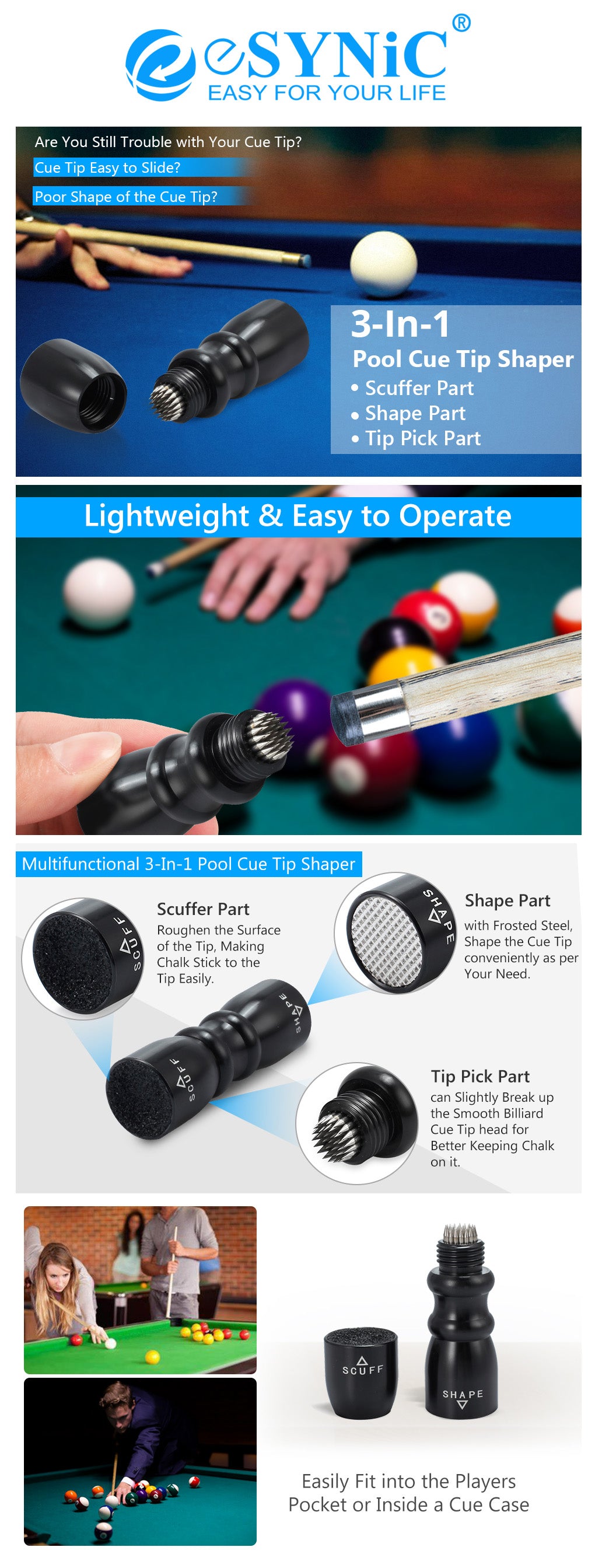 eSynic 3 in 1 Pool Cue Tip Shaper -Black