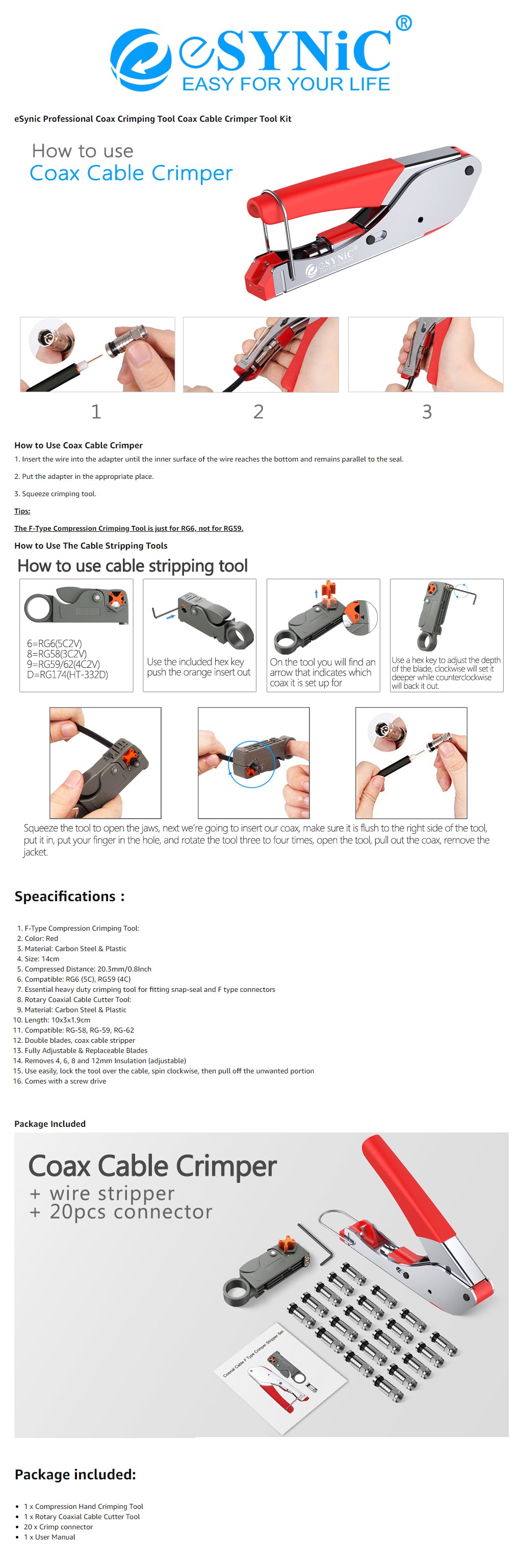 eSynic Coax Cable Crimper Tool Kit