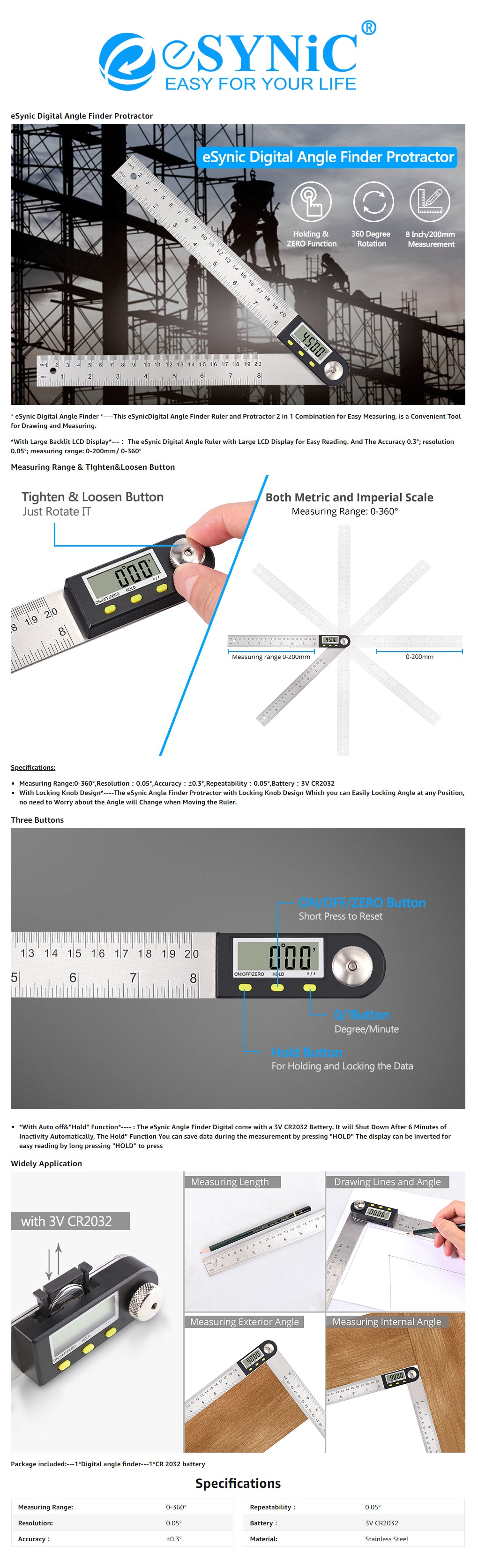 eSynic Electronic Digital Angle Ruler Protractor