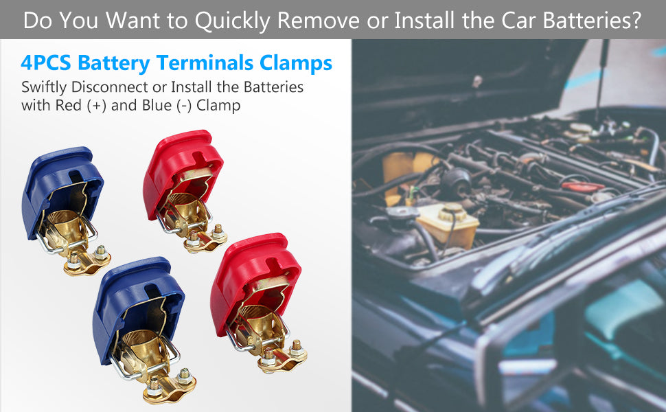 eSynic 4Pcs Quick Release Battery Terminals Clamps