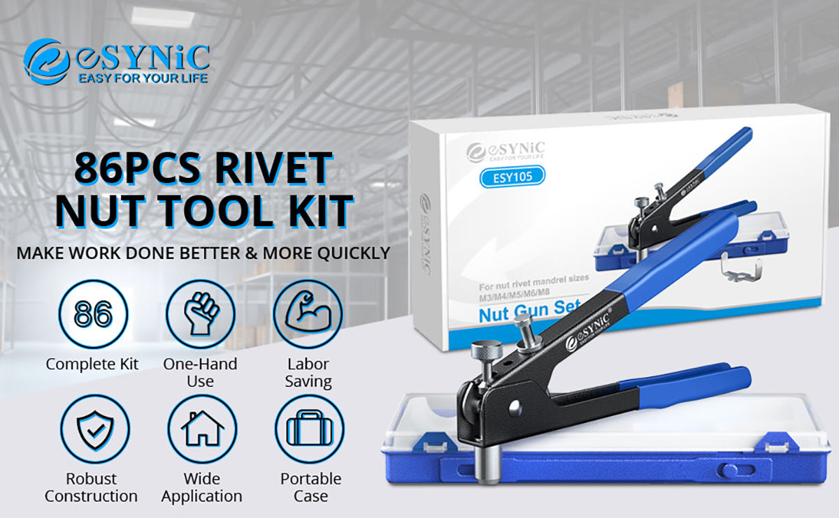 eSynic Professional 86Pcs Rivet Nut Gun Set