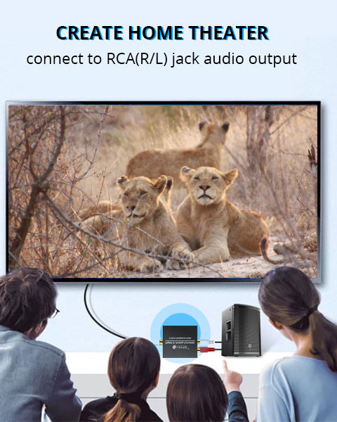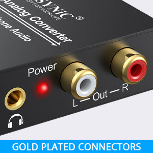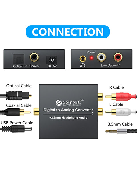 Optical audio converter comes with Power Supply and Optical Cable, plug and play, very conveniet to convert coaxial/Toslink digital PCM Audio signals to analog L/R RCA and 3. 5mm jack Audio simultaneously.